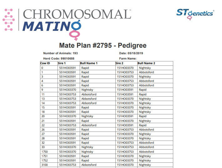Se realizan con el programa de acoplamientos Chromosomal Mating, desarrollado por ST genetics.